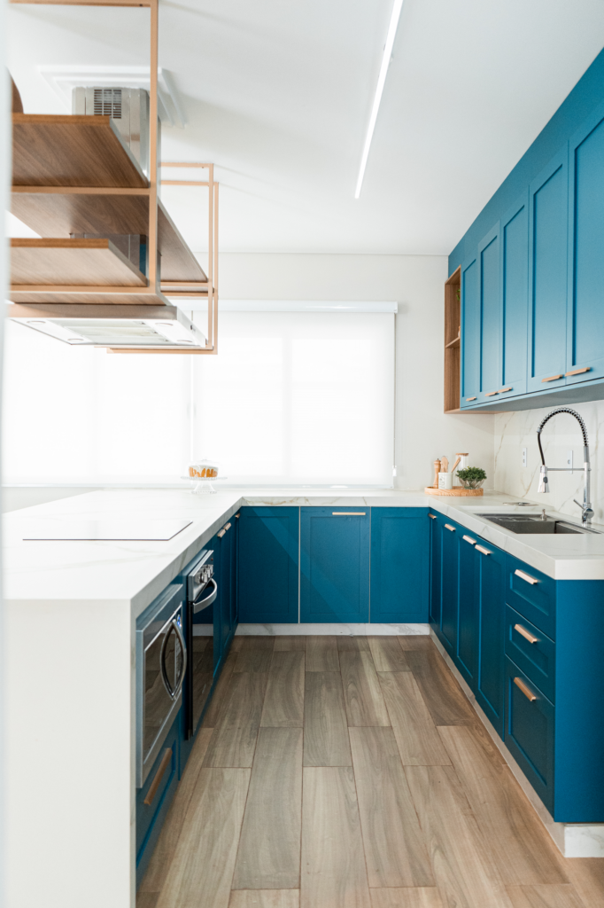 Existem cores que não passam despercebidas, e o azul é uma delas. Na decoração, ele traz uma sensação de serenidade e frescor, e quando aparece nos móveis planejados da cozinha, o resultado é simplesmente encantador.