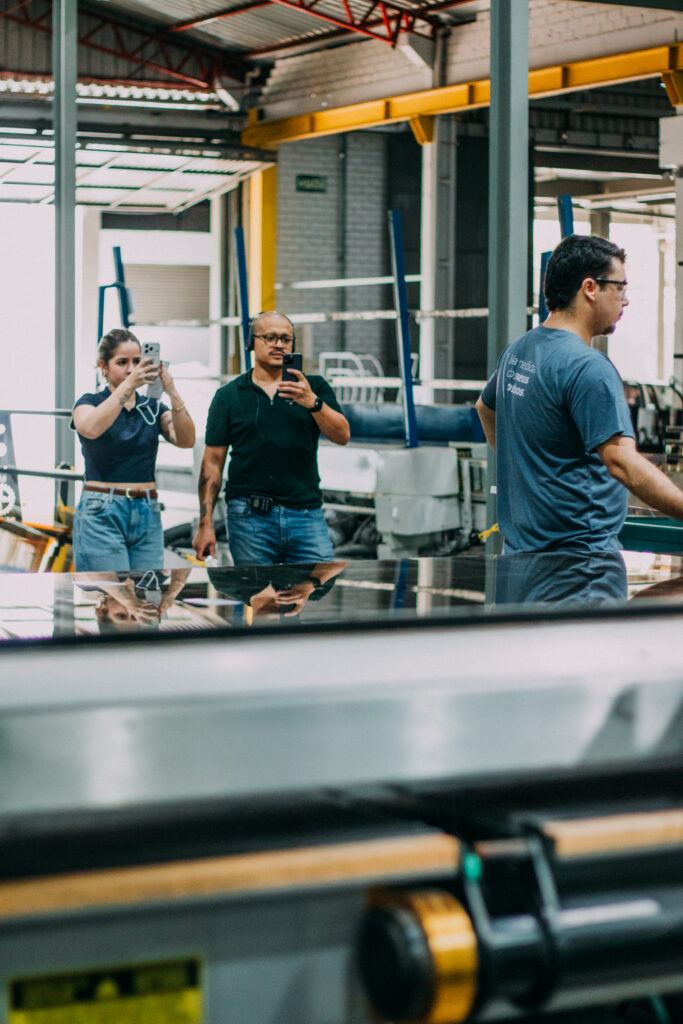 Visitar a fábrica muda a maneira de projetar porque transforma informação em entendimento. O que antes parecia apenas uma escolha no papel passa a ser visto como parte de um processo real, com etapas, limites, possibilidades e decisões que impactam diretamente o resultado final.